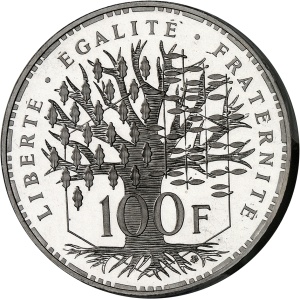 FRANCE - FRANCE Ve République (1958 à nos jours). Piéfort de 100 francs Panthéon en platine, Frappe spéciale (…