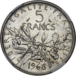 FRANCE - FRANCE Ve République (1958 à nos jours). Épreuve au module de 5 francs Semeuse, au revers de 50 centi…