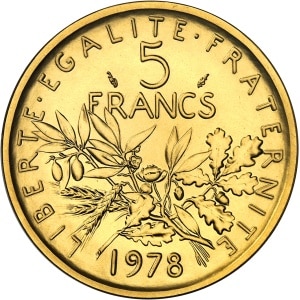 FRANCE - FRANCE Ve République (1958 à nos jours). Piéfort de 5 francs Semeuse en or, Frappe spéciale (SP) 1978…