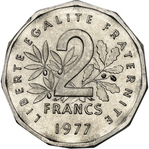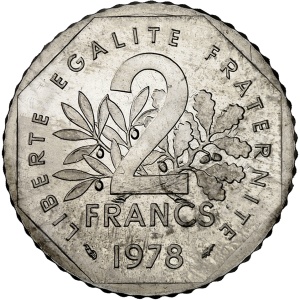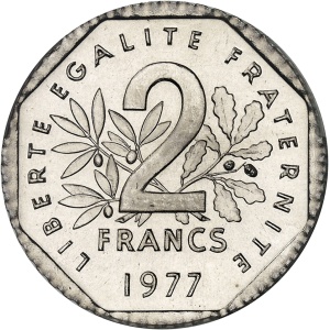 FRANCE - FRANCE Ve République (1958 à nos jours). Présérie de 2 francs Semeuse, tranche et listel à 11 pans, F…