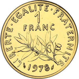 FRANCE - FRANCE Ve République (1958 à nos jours). Piéfort de 1 franc Semeuse en Or, Frappe spéciale (SP) 1978,…