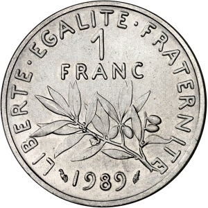 FRANCE - FRANCE Ve République (1958 à nos jours). 1 franc Semeuse sur flan de 20 centimes Lagriffoul en cupro-…