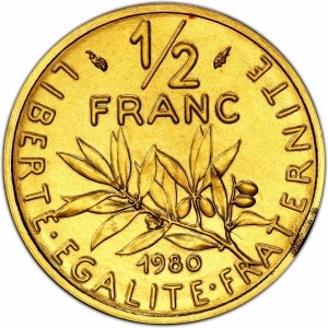 FRANCE - FRANCE Ve République (1958 à nos jours). Piéfort de 1/2 franc Semeuse en or, Frappe spéciale (SP) 197…