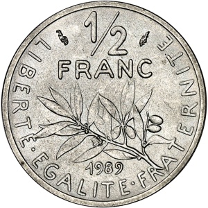 FRANCE - FRANCE Ve République (1958 à nos jours). Piéfort de 1/2 franc Semeuse en argent, Frappe spéciale (SP)…