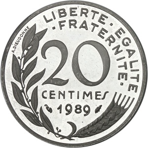 FRANCE - FRANCE Ve République (1958 à nos jours). Piéfort de 20 centimes Marianne en argent, Frappe spéciale (…