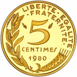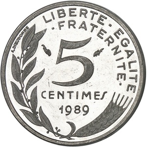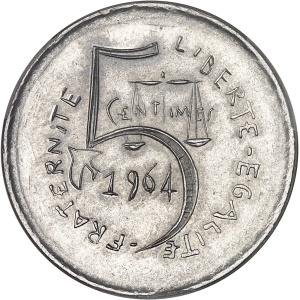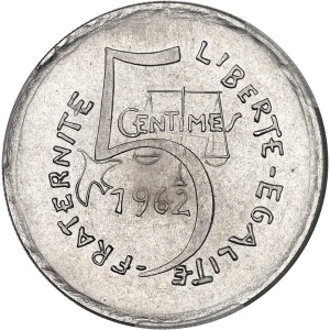FRANCE - FRANCE Ve République (1958 à nos jours). Épreuve de 5 centimes, hybride des premier et deuxième proje…