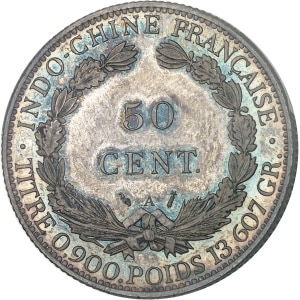 INDOCHINE FRANÇAISE - FRENCH INDOCHINA IIIe République (1870-1940). 50 cent(ièmes), Flan bruni (PROOF) 1889, A…