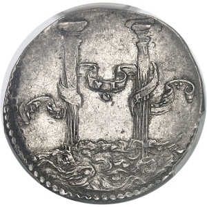 IRAN - IRAN Nassereddine Chah (1848-1896). Essai au module de 5 francs de la presse de S. M. le Shah, construi…