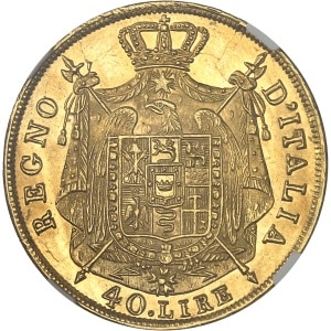 ITALIE - ITALY Milan, royaume d’Italie, Napoléon Ier (1805-1814). 40 lire, 2e type, tranche en creux 1814, M, …