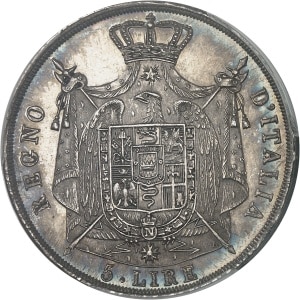 ITALIE - ITALY Milan, royaume d’Italie, Napoléon Ier (1805-1814). 5 lire, 2e type avec tranche en creux 1814, …