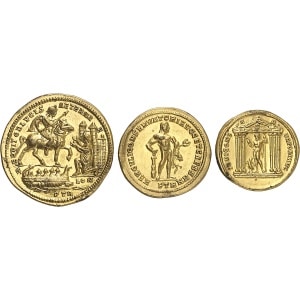 EMPIRE ROMAIN - ROMAN Constance Ier Chlore (293-306). Coffret de 3 médaillons, galvanoplasties de cuivre doré,…