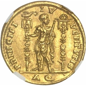 EMPIRE ROMAIN - ROMAN Licinius II, César (317-324). Aureus pour les Quinquennalia du jeune César ND (322), Nic…