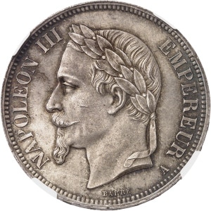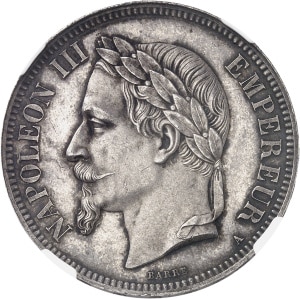 FRANCE Second Empire / Napoléon III (1852-1870). Essai uniface d’avers de 5 francs tête laurée, Frappe spécial…
