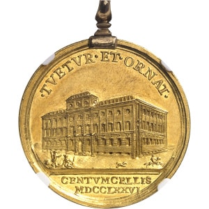 ITALIE Vatican, Pie VI (1775-1799). Médaille d’Or, construction d’une nouvelle caserne à Civitavecchia, par Fe…