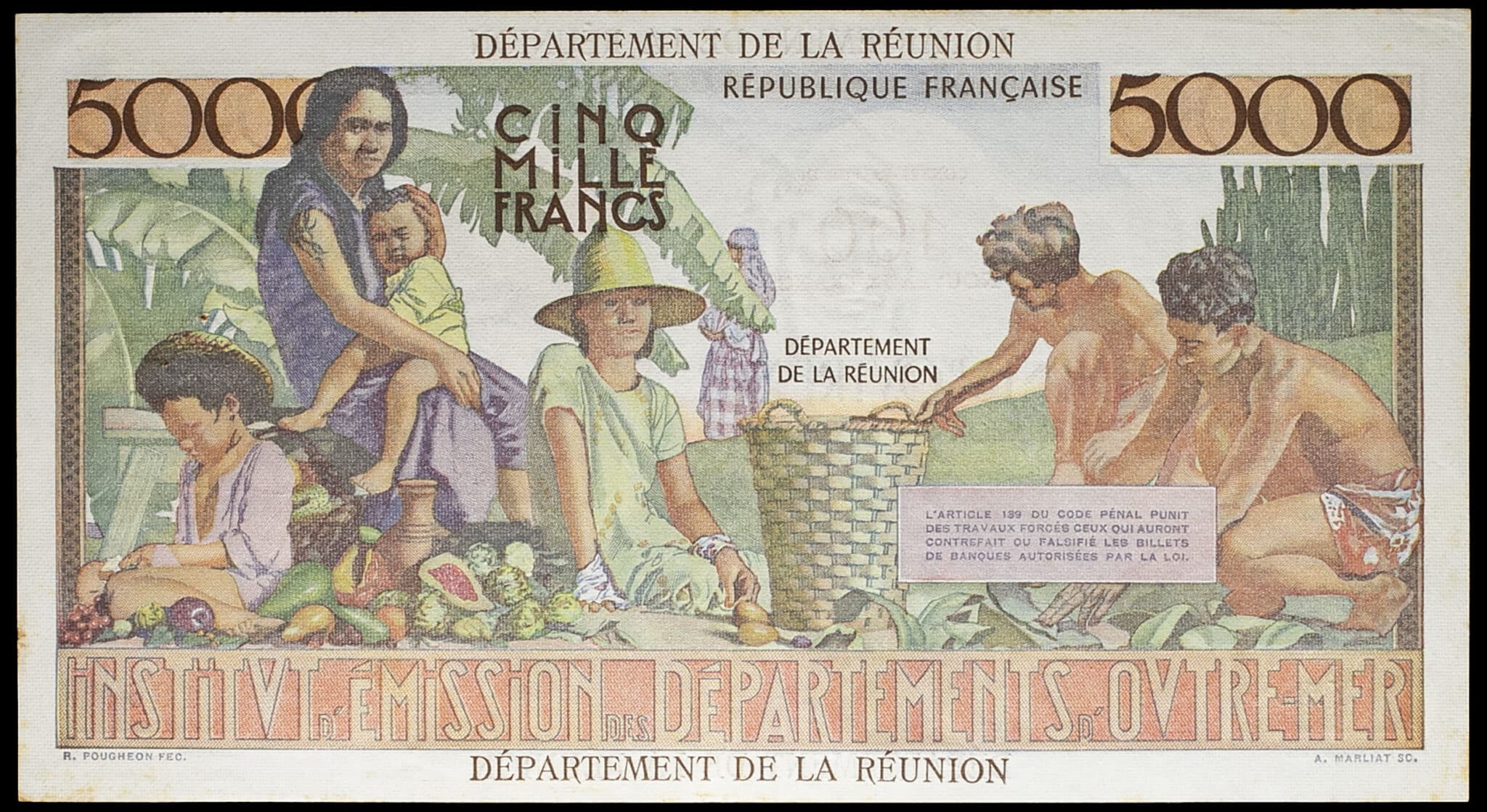 - REUNION 100 nouveaux francs surchargé sur 5000 francs type “Victor Schœlcher” ND (1967).