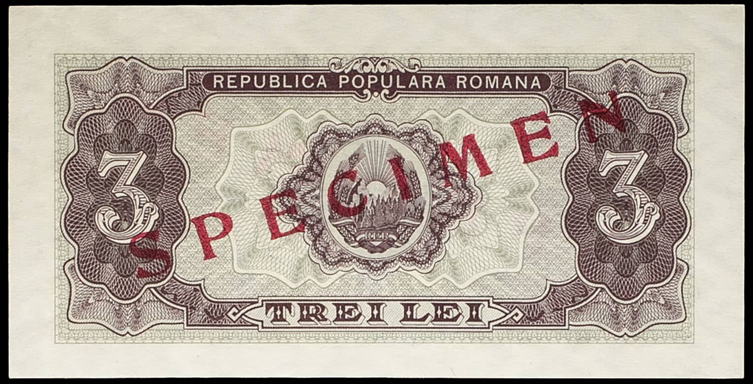 - ROMANIA 3 lei (SPÉCIMEN) 1952.