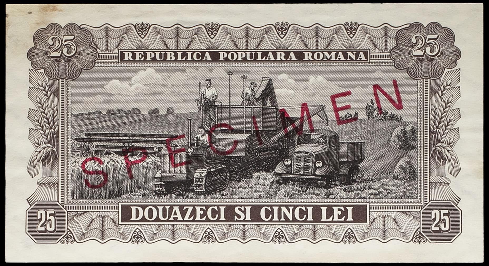 - ROMANIA 25 lei avec le portrait de Tudor Vladimirescu (SPÉCIMEN) 1952.