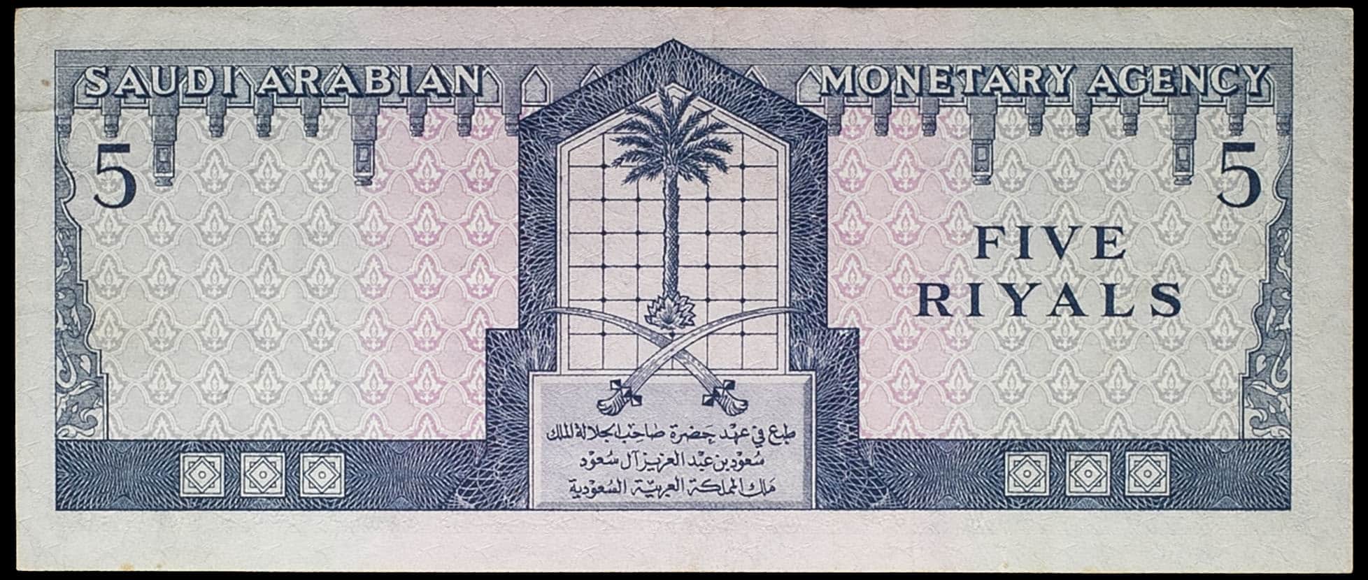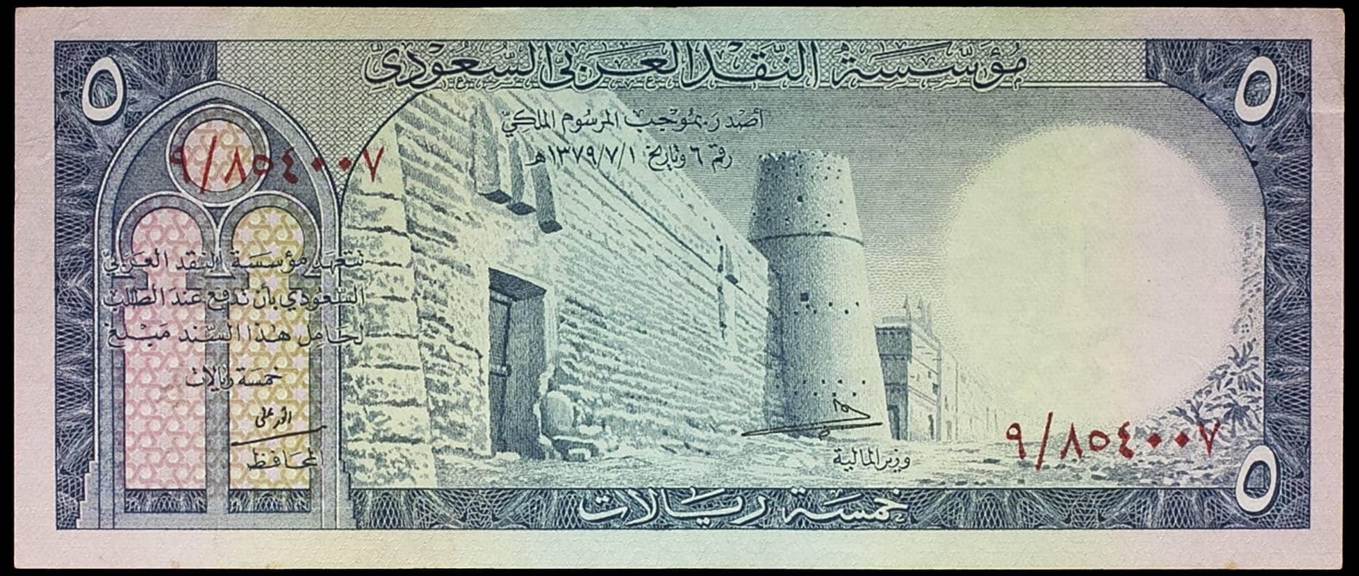 - SAUDI ARABIA 5 riyals ND (1961 / AH 1379).