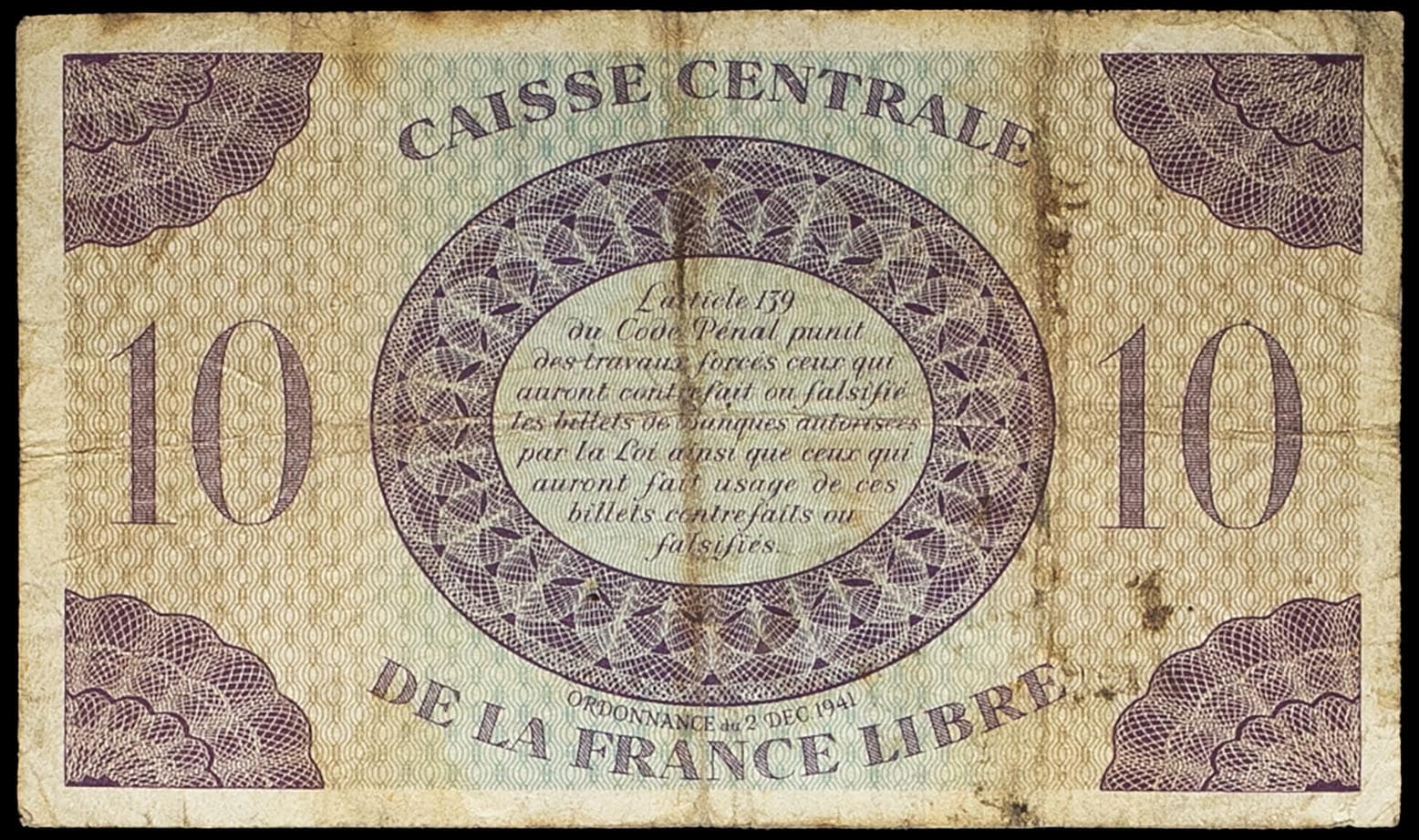 - SAINT PIERRE AND MIQUELON 10 francs type “Marianne” dit “Edmond Dulac” - Caisse centrale de la France libre 2 décembre 1941 (20 janvier 1943).