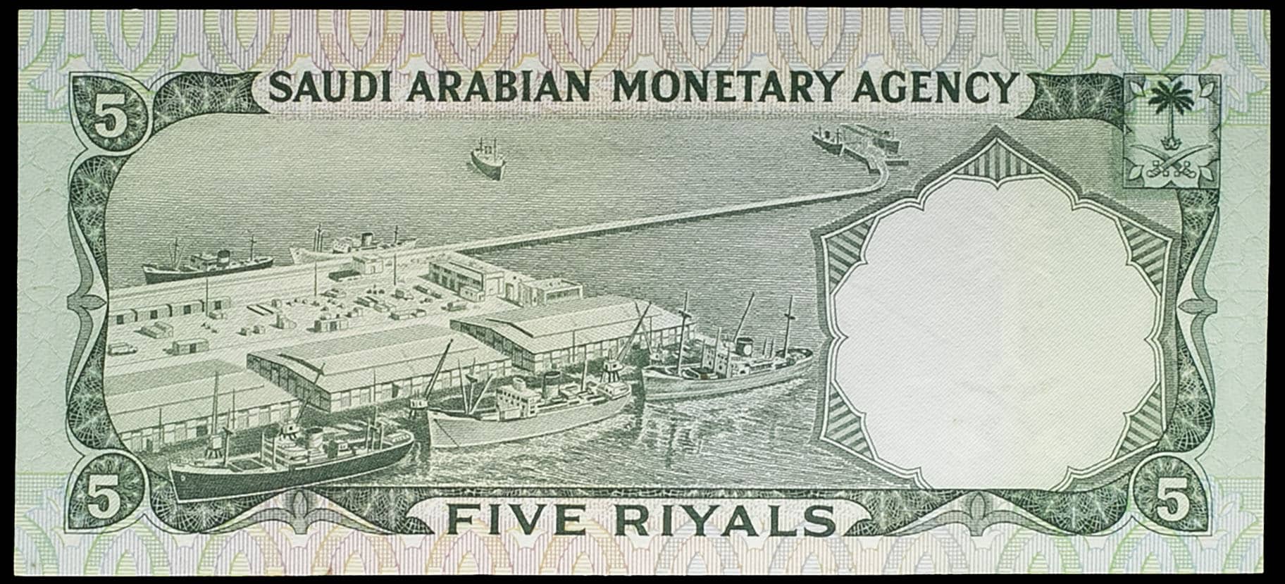 - SAUDI ARABIA 5 riyals ND (1968 / AH 1387).