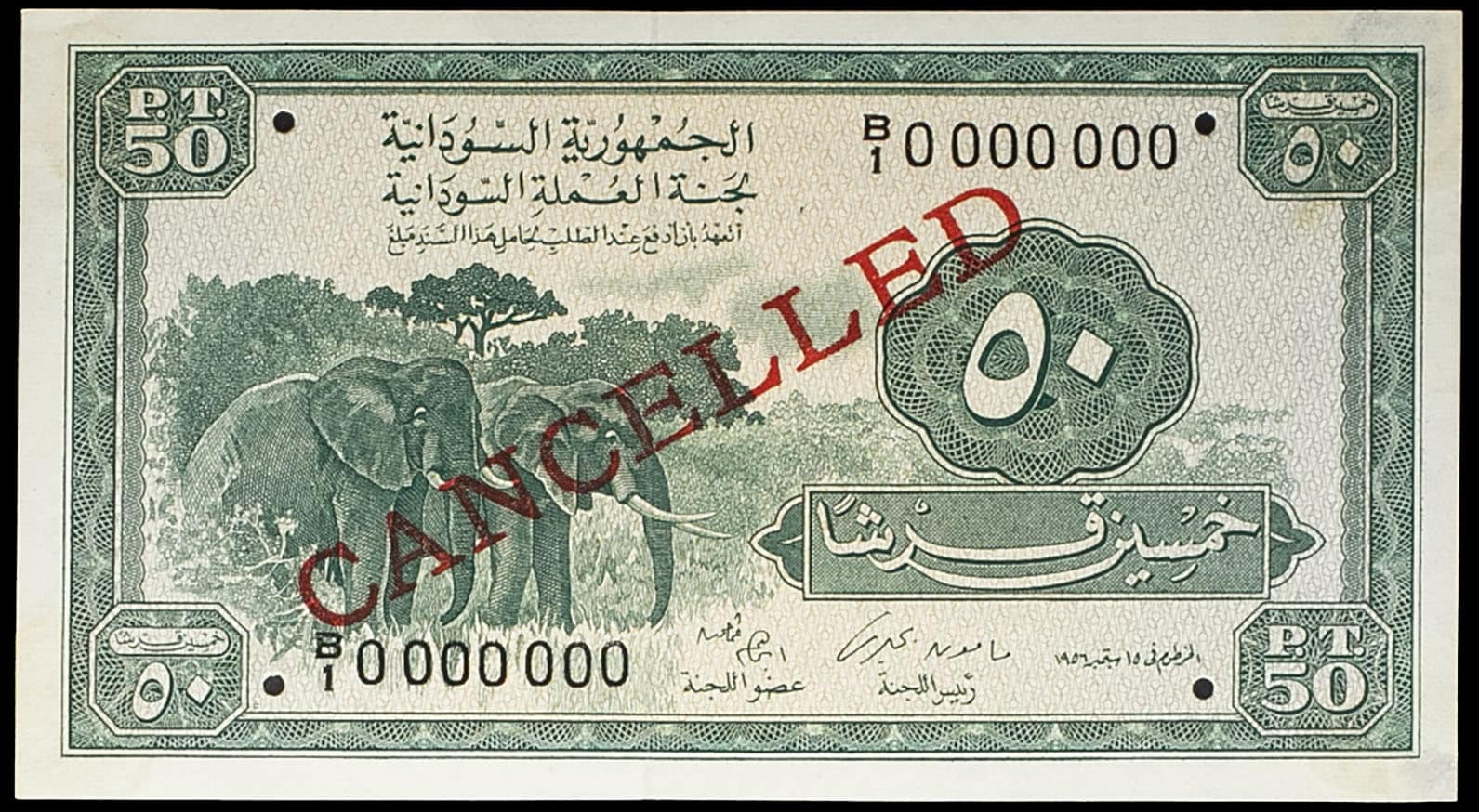 - SUDAN 50 piastres (SPÉCIMEN ANNULÉ / CANCELLED) 1956.