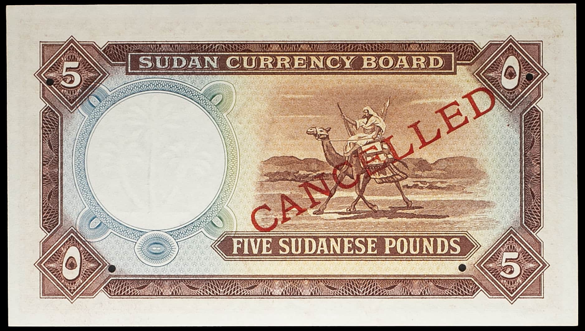 - SUDAN 5 pounds (SPÉCIMEN ANNULÉ / CANCELLED) 1956.