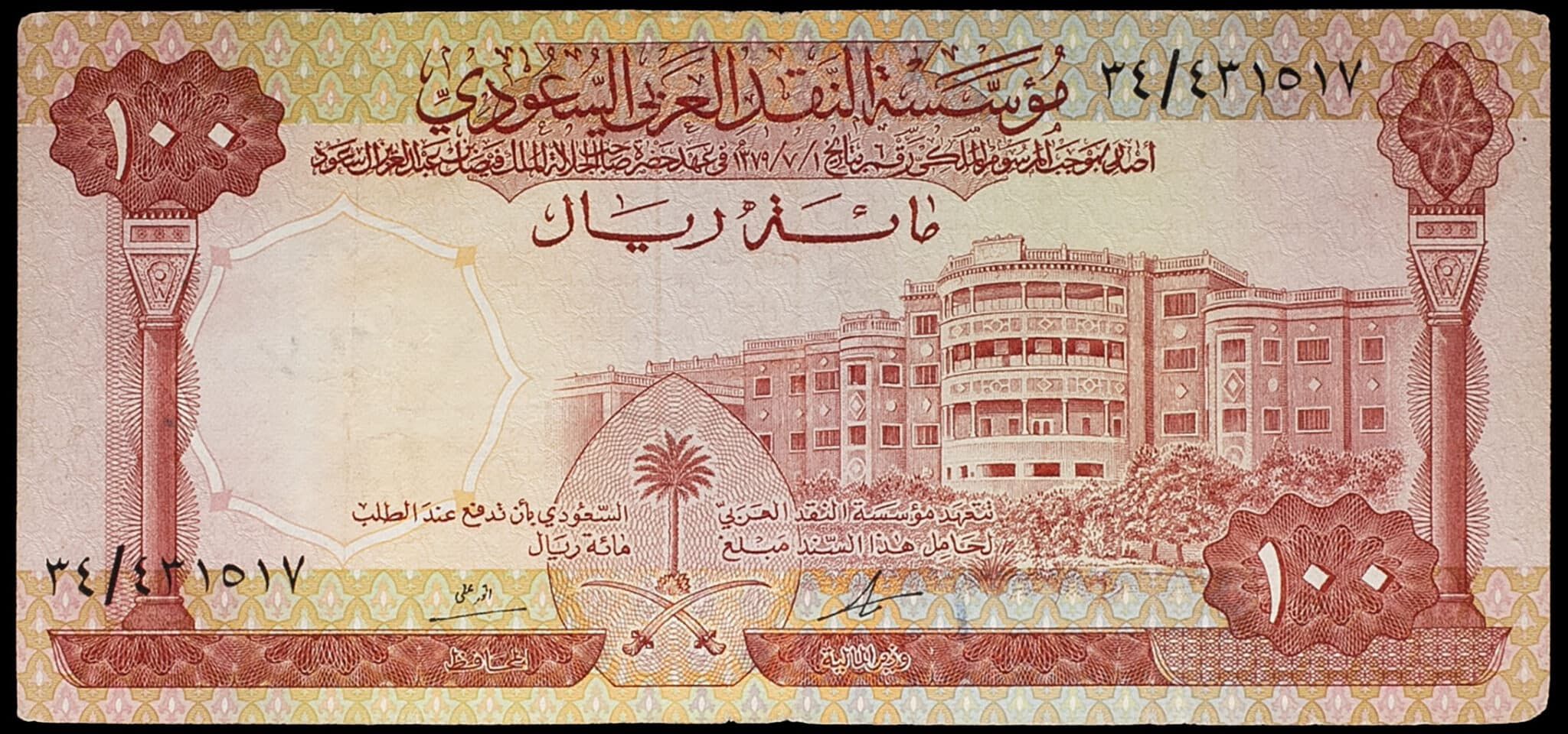 - SAUDI ARABIA 100 riyals ND (1966 / AH 1386).