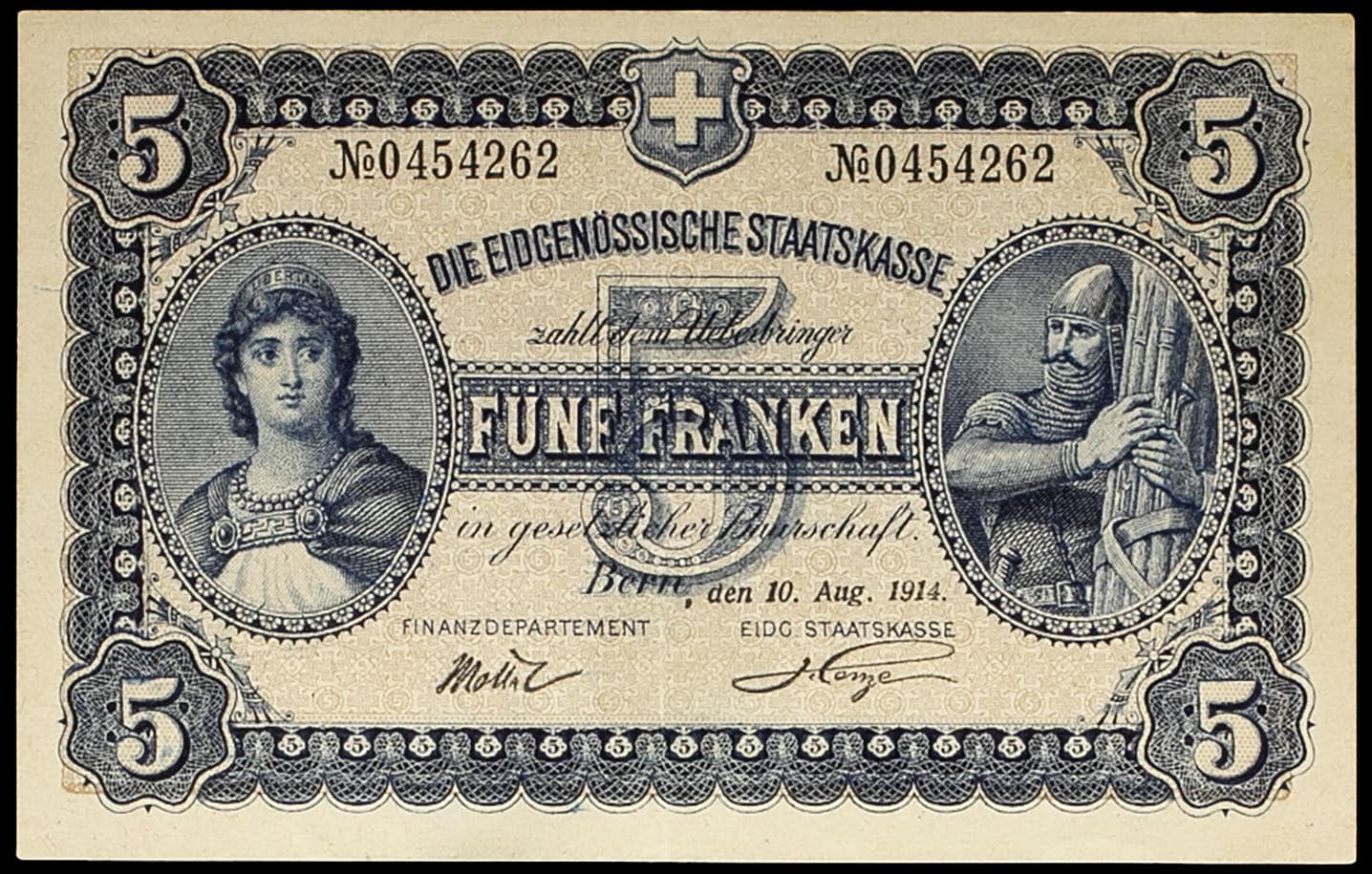 - SWITZERLAND 5 franken (langue allemande) 10 août 1914.