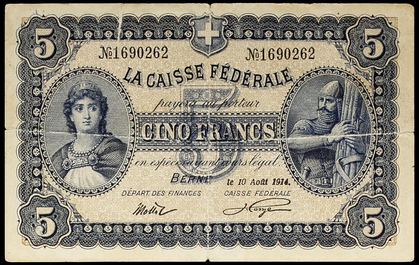 - SWITZERLAND 5 francs (langue française) 10 août 1914.