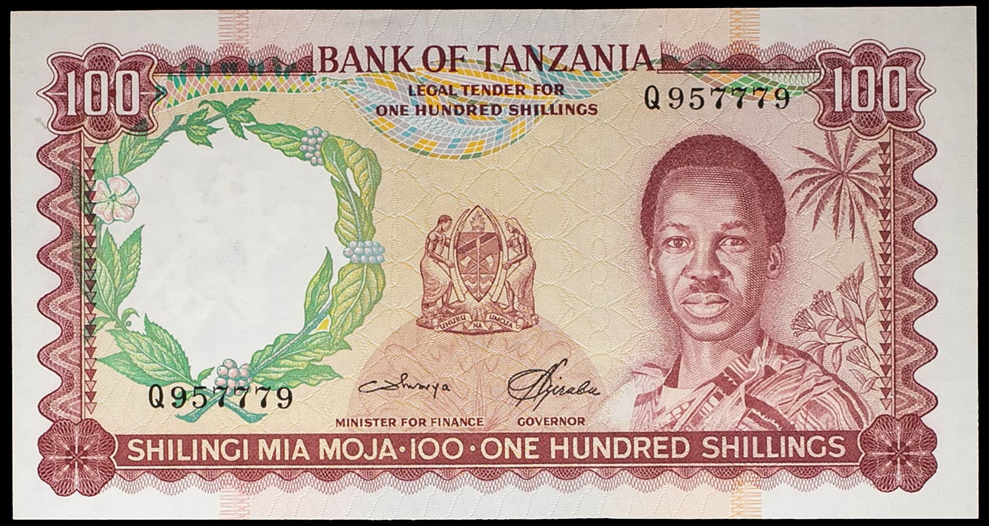 - TANZANIA 100 shillings avec le portrait du président Julius Nyerere ND (1966).