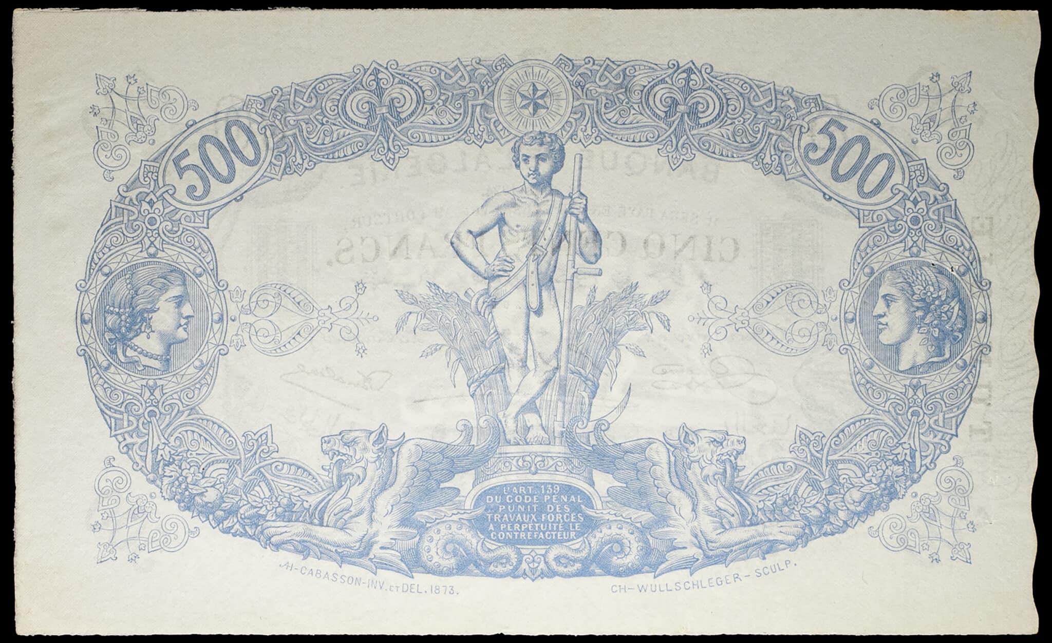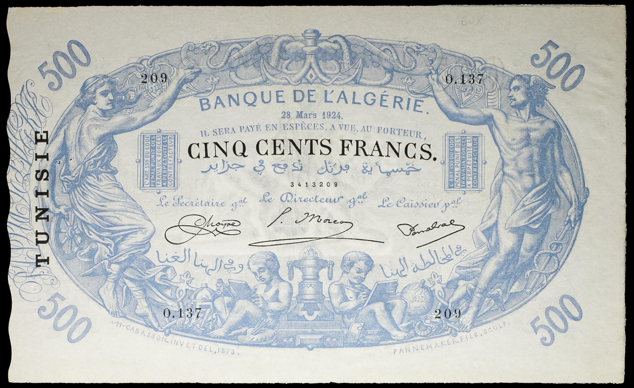 - TUNISIA 500 francs type “bleu” modifié - Banque de l’Algérie 28 mars 1924.