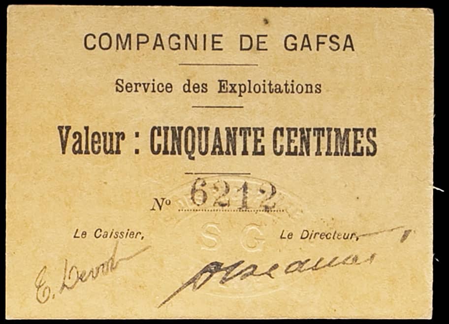 - TUNISIA 50 centimes type “Compagnie de Gafsa” 10 février 1916.