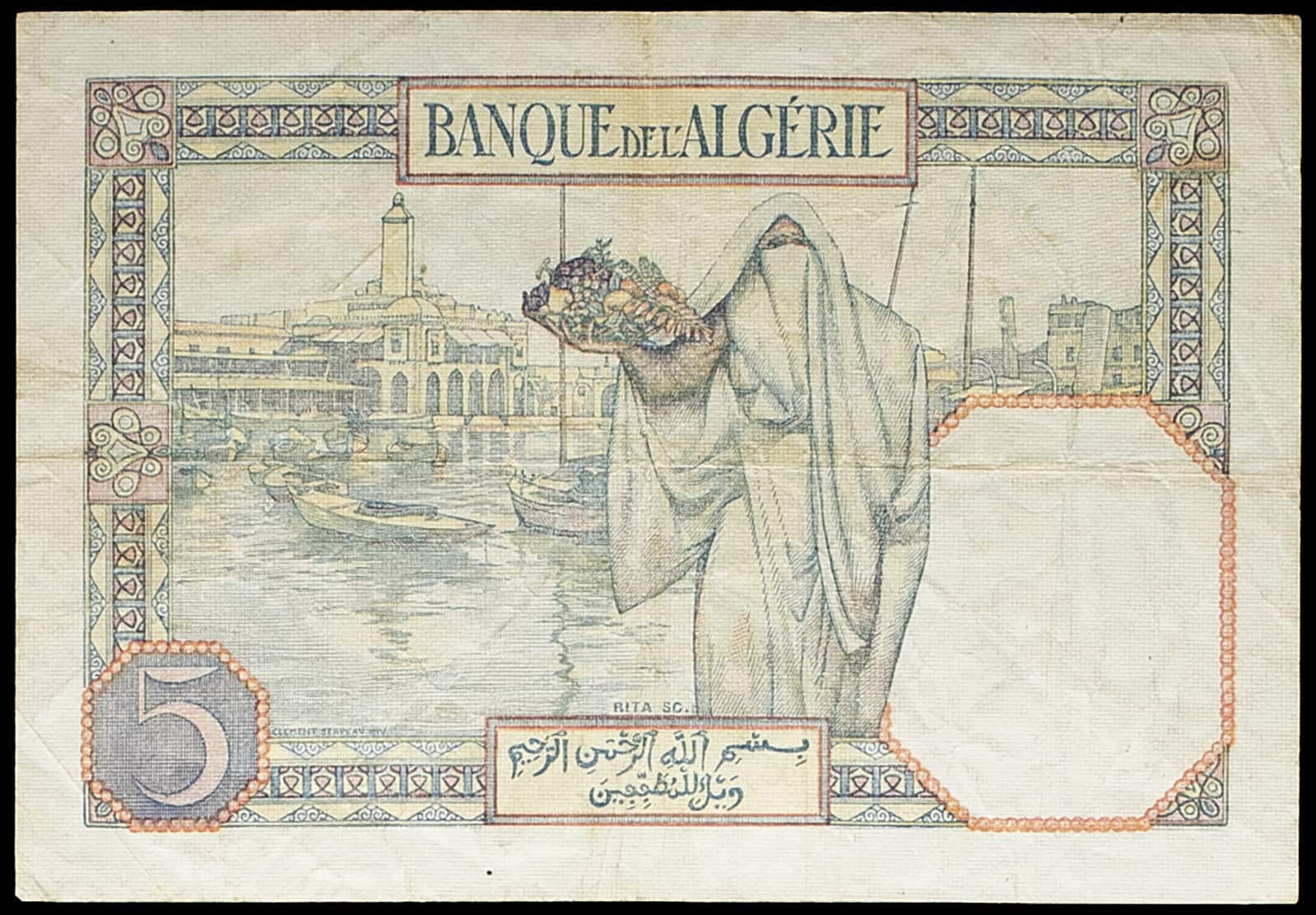 - TUNISIA 5 francs avec numérotation inversée - Banque de l’Algérie 30-1-1941.