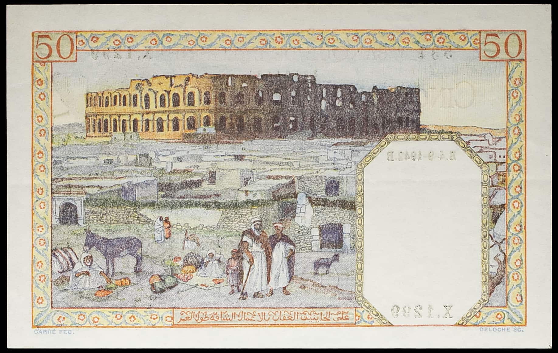 - TUNISIA 50 francs type “couple d’indigènes” - Banque de l’Algérie 4-9-1942.