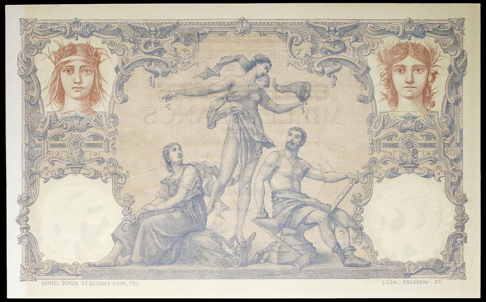 - TUNISIA 1000 francs surchargé sur 100 francs type “bleu et rose” - Banque de l’Algérie 16-5-1892 (1943).