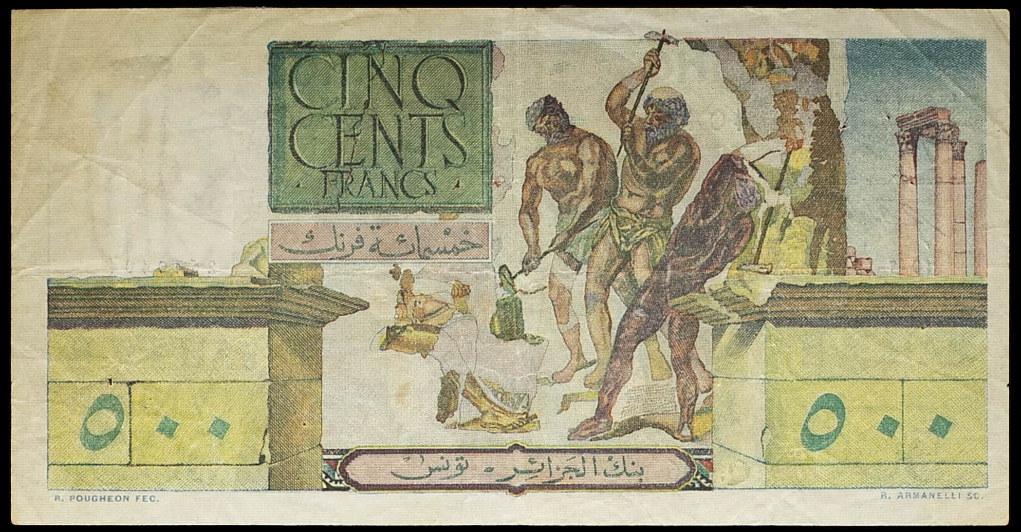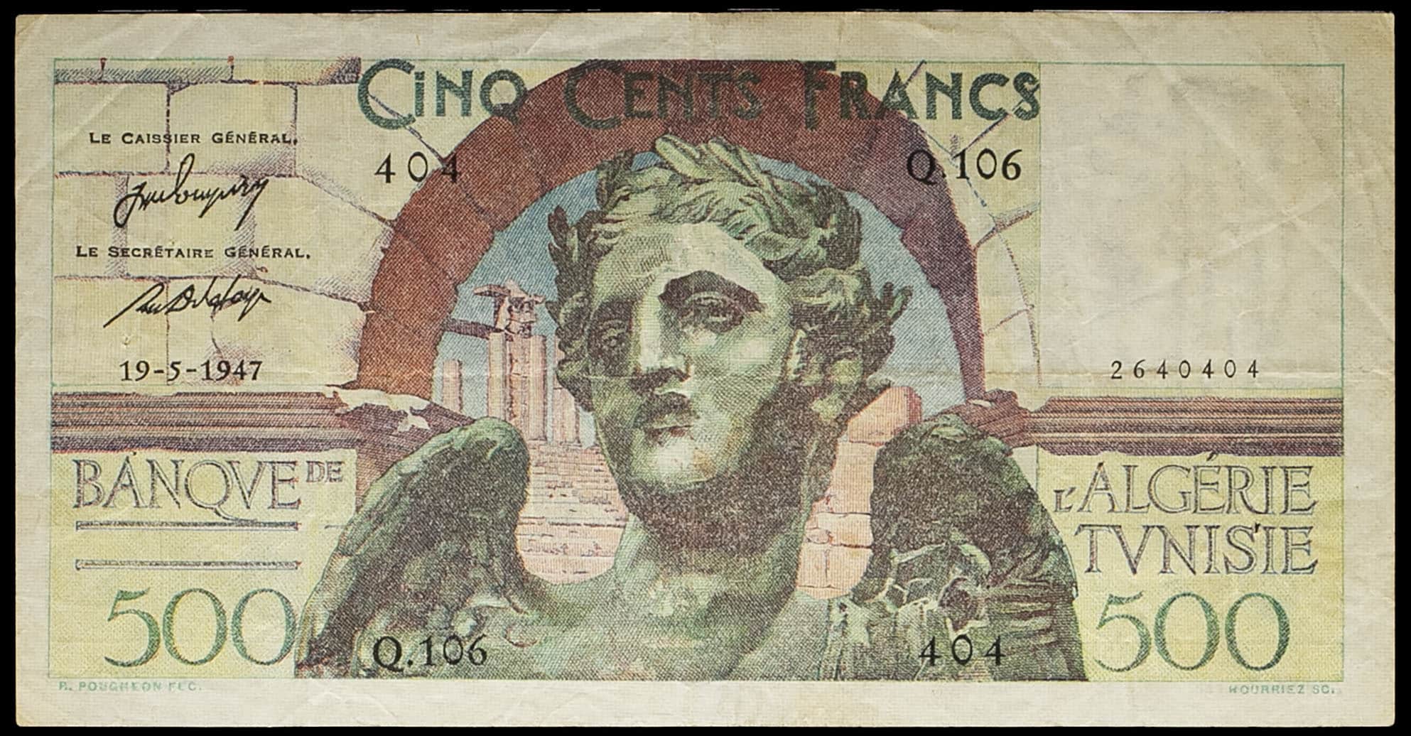 - TUNISIA 500 francs type “Victoire ailée” - Banque de l’Algérie-Tunisie 19-5-1947.