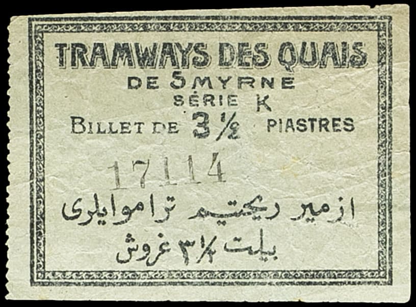 - TURKEY 3 ½ piastres - Tramways des quais de Smyrne ND (1899-1909).