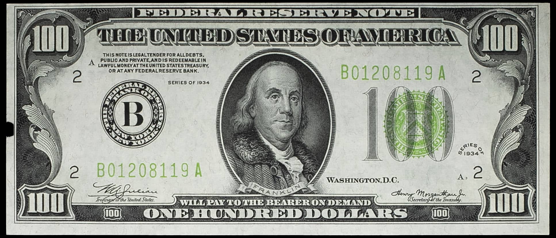 - UNITED STATES OF AMERICA 100 dollars avec le portrait du président Benjamin Franklin - New York (B) 1934.