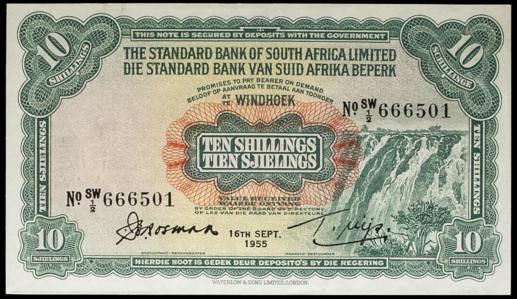 - SOUTH WEST AFRICA 10 shillings - Standard Bank of South Africa Ltd. 16 septembre 1955.
