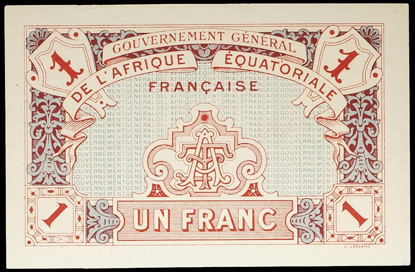 - FRENCH EQUATORIAL AFRICA 1 franc ND (1917).