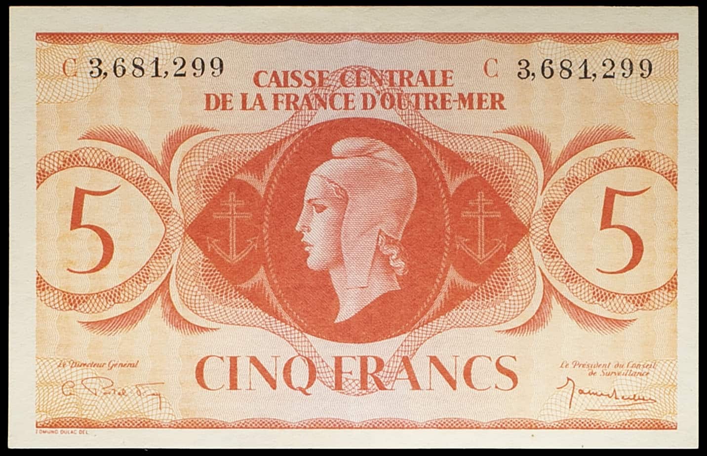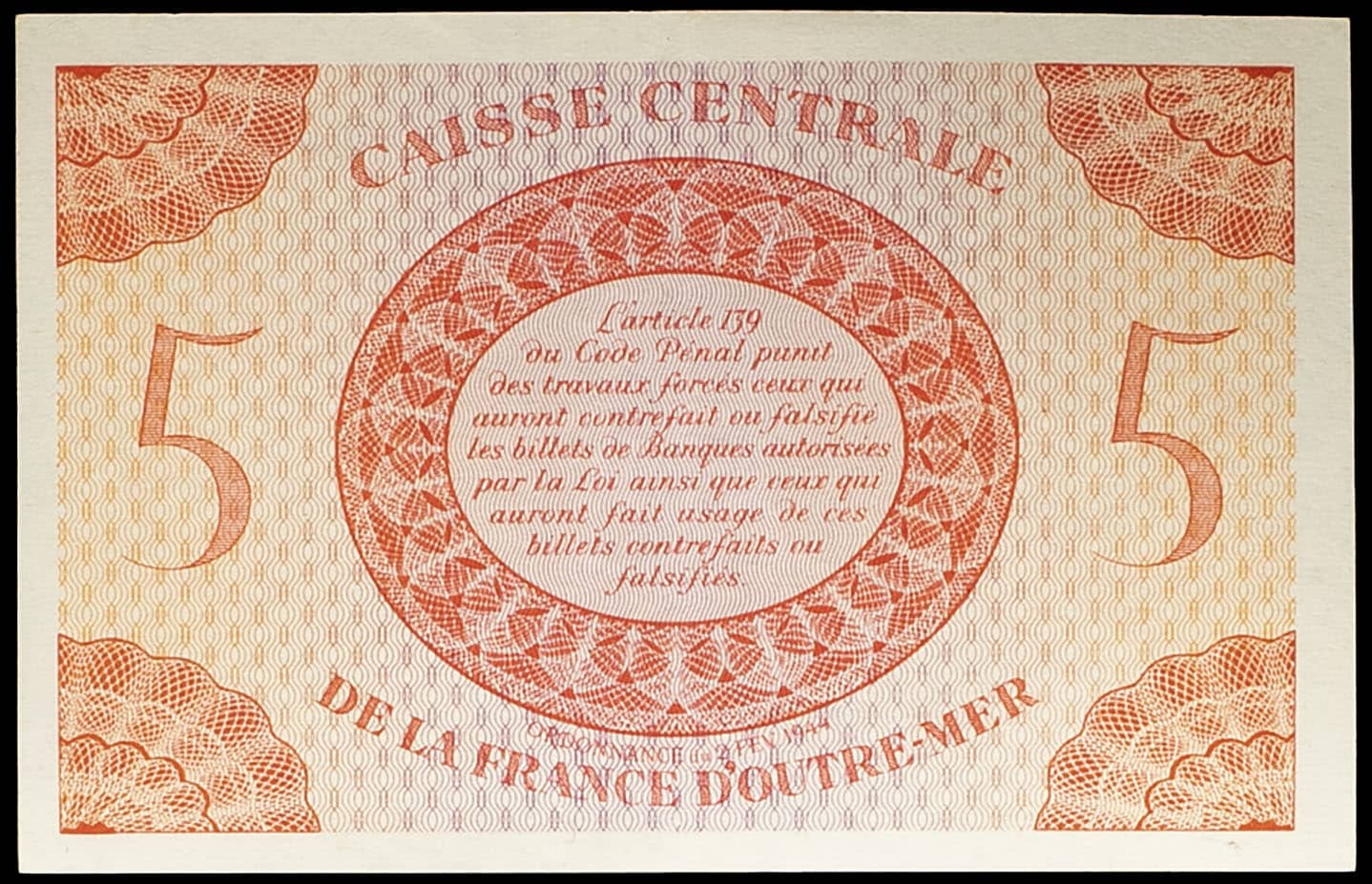 - FRENCH EQUATORIAL AFRICA 5 francs type “Marianne” dit “Edmond Dulac” - Caisse centrale de la France d’outre-mer 2 février 1944 (31 mai 1946).