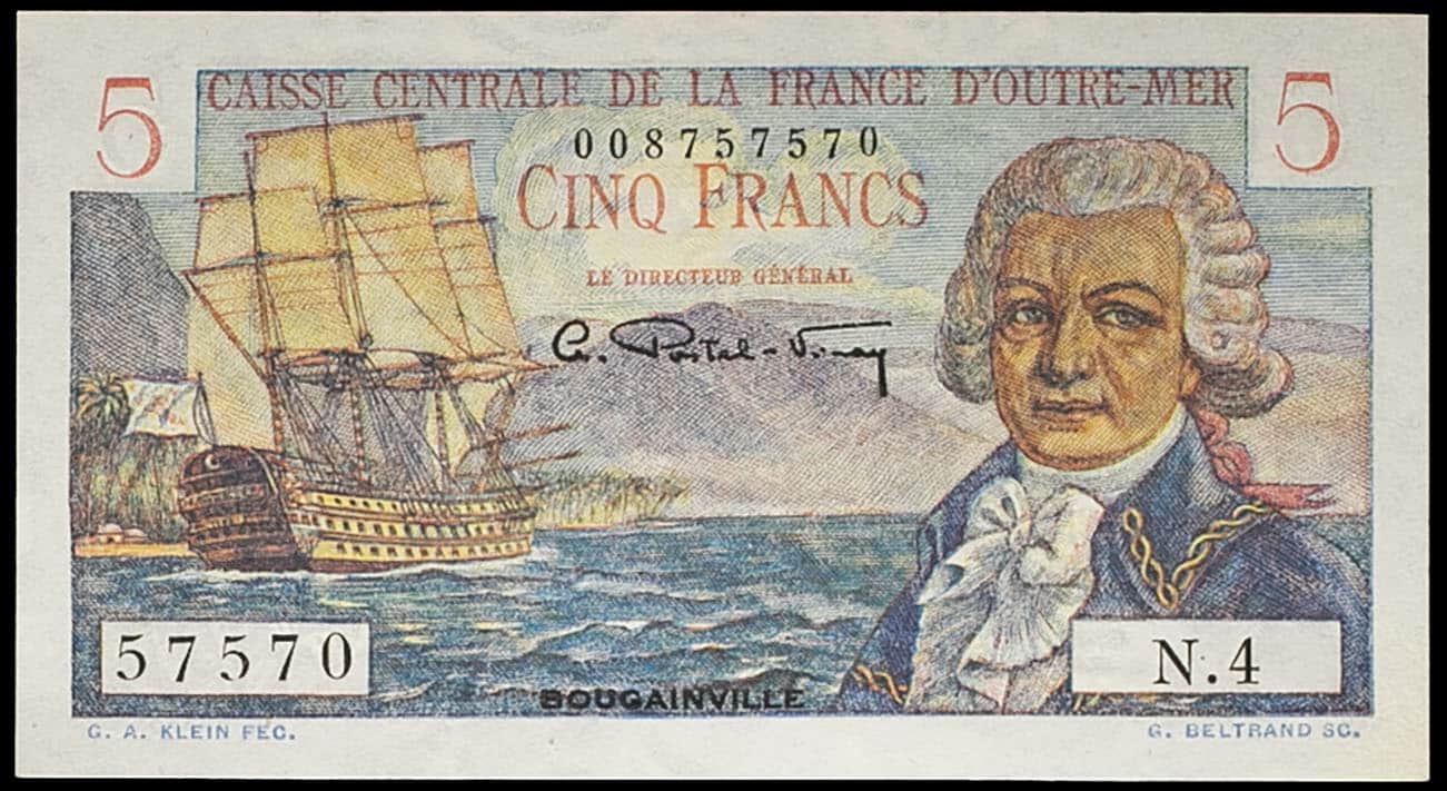 - FRENCH EQUATORIAL AFRICA 5 francs type “Bougainville” - Caisse centrale de la France d’outre-Mer ND (1946).