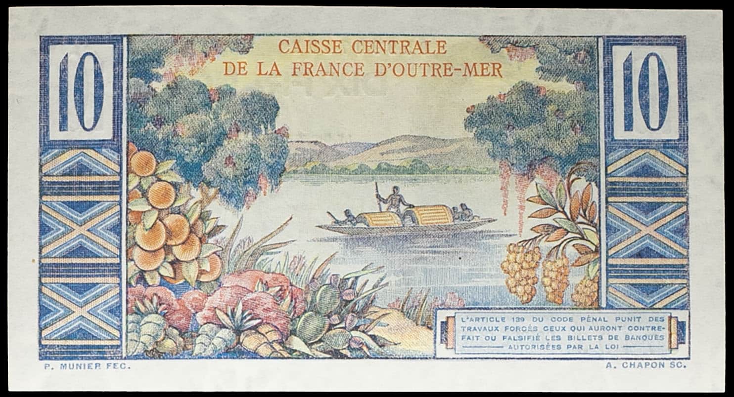 - FRENCH EQUATORIAL AFRICA 10 francs type “Colbert” - Caisse centrale de la France d’outre-mer ND (1946).