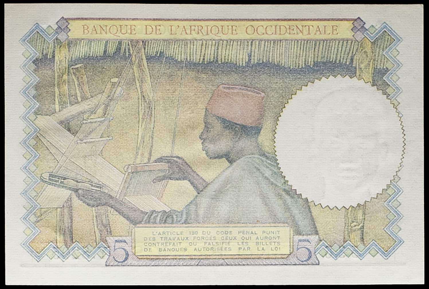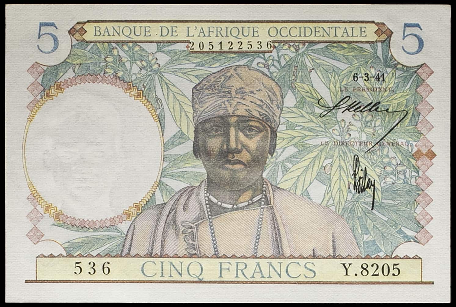 - FRENCH WEST AFRICA 5 francs 6-3-1941.