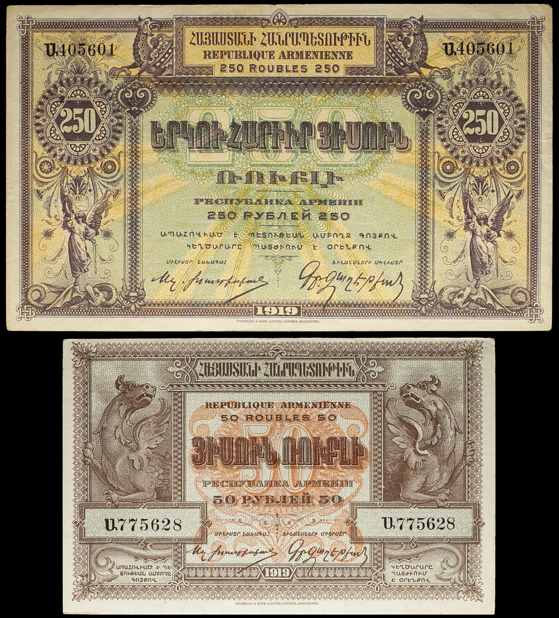 - ARMENIA Lot (2) - 50 et 250 roubles 1919.