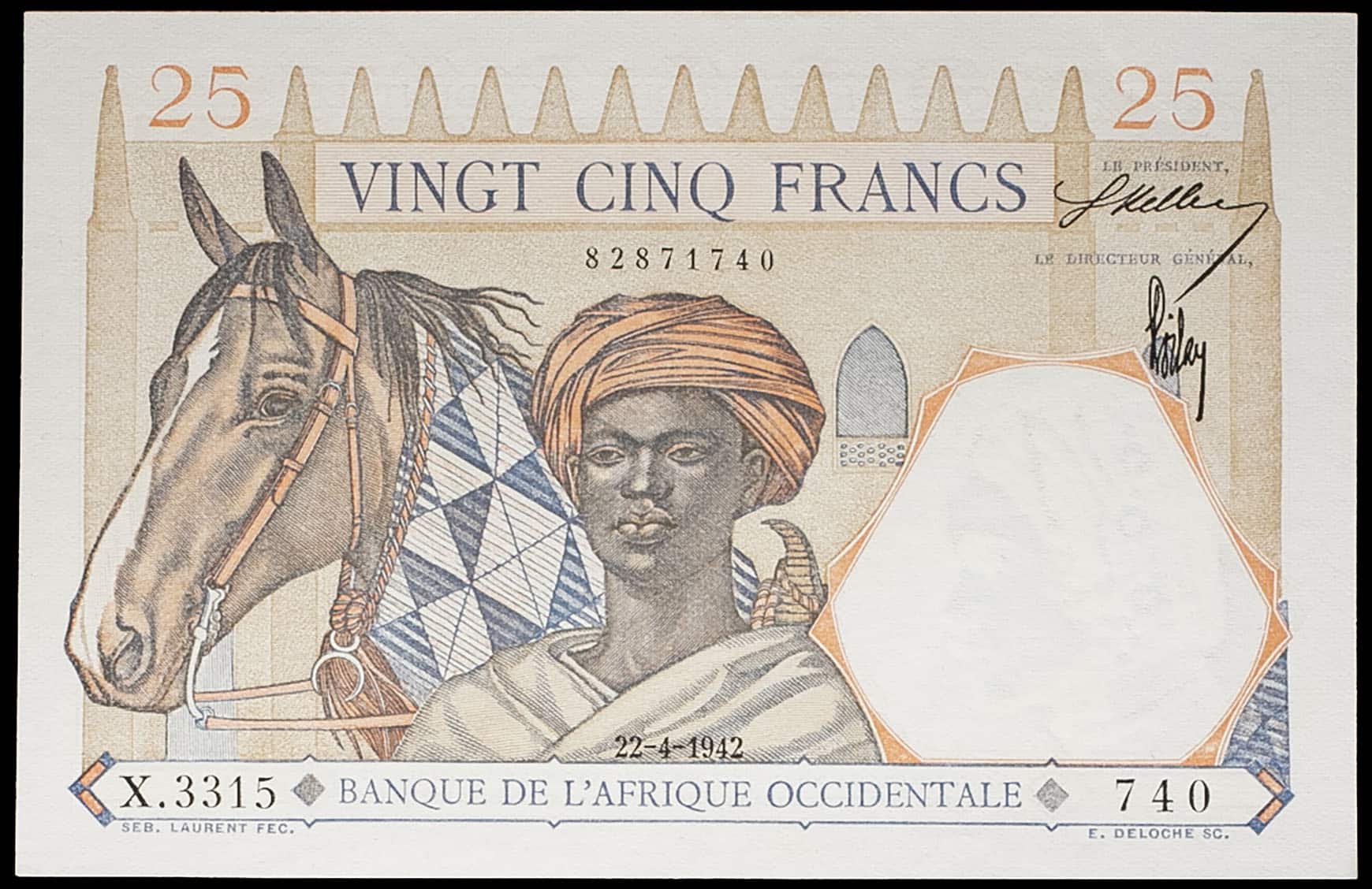 - FRENCH WEST AFRICA 25 francs 22-4-1942.