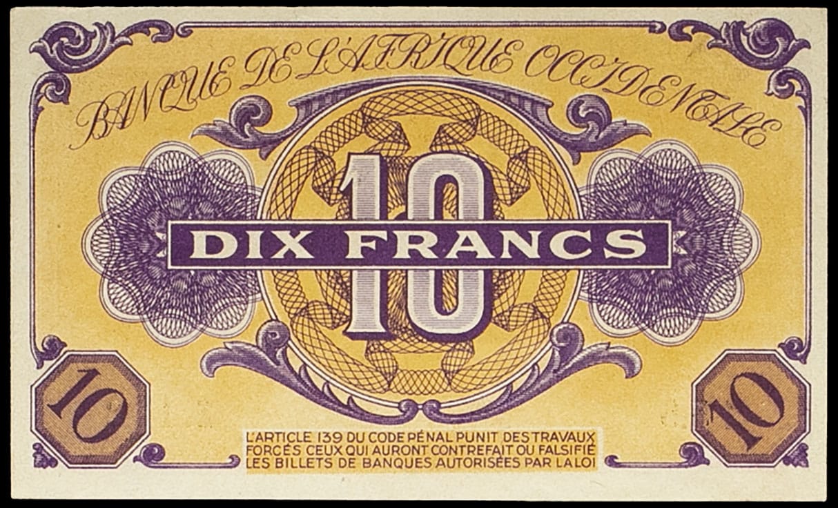 - FRENCH WEST AFRICA 10 francs 2-1-1943.