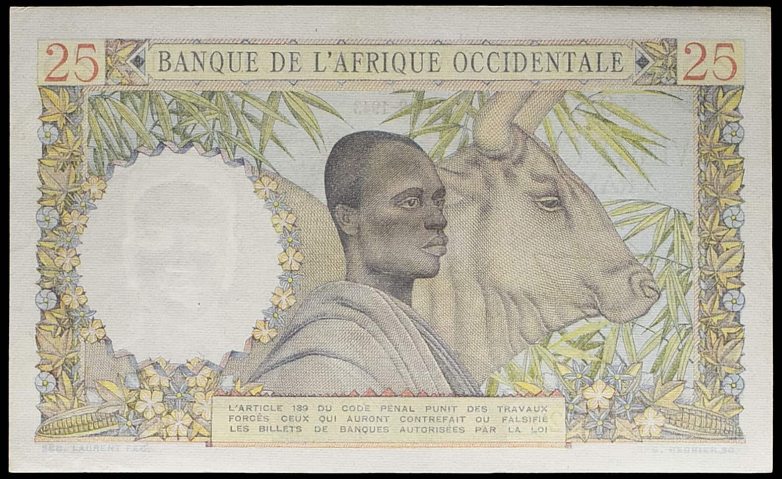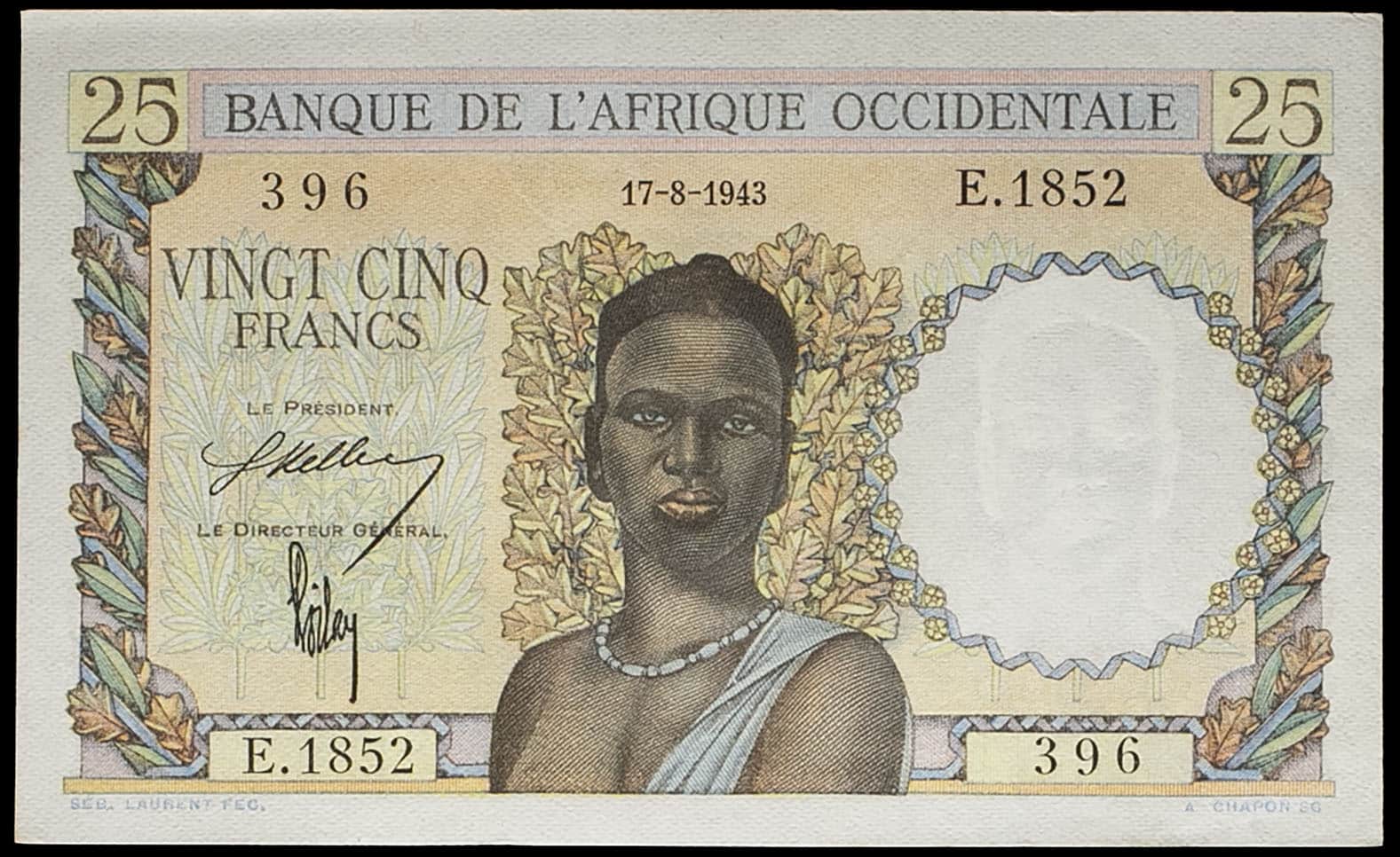 - FRENCH WEST AFRICA 25 francs 17-8-1943.