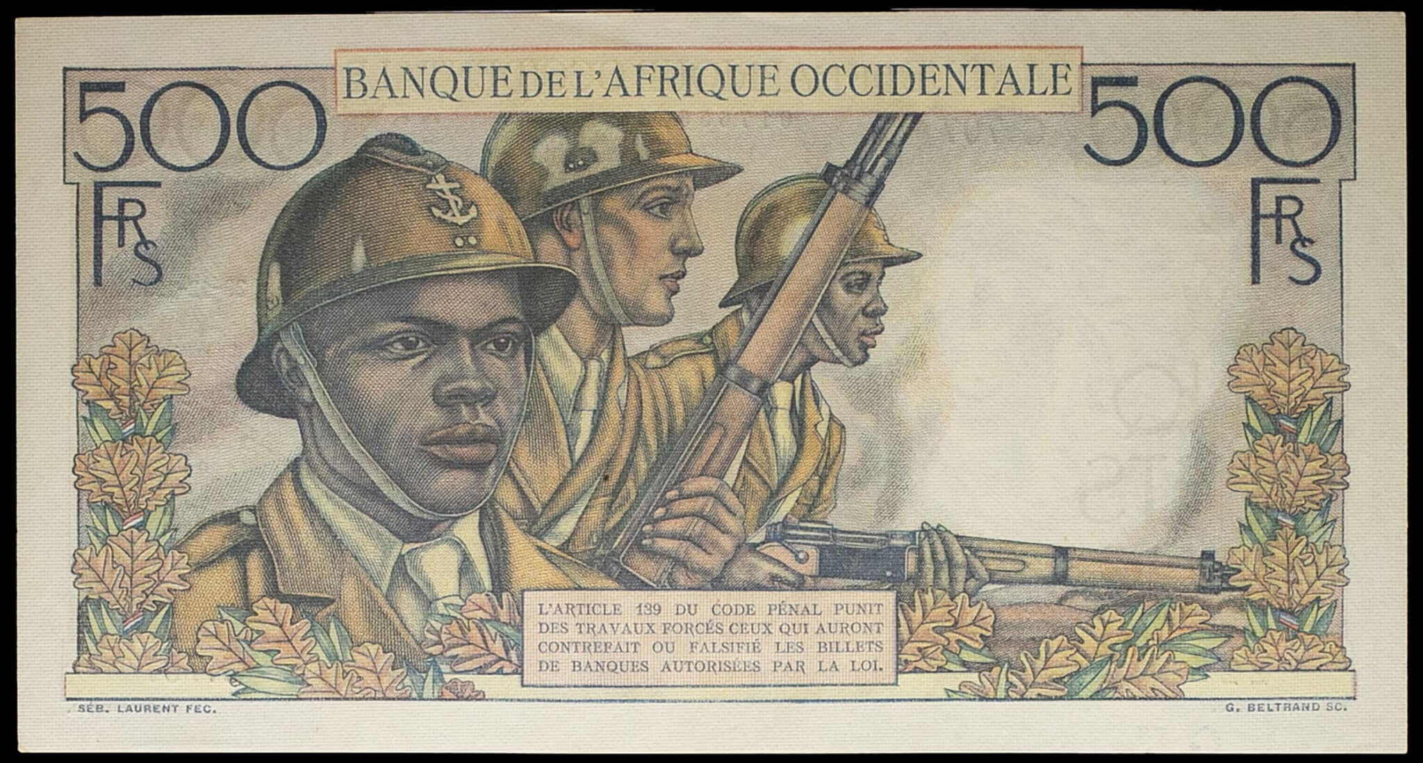- FRENCH WEST AFRICA 500 francs 29-12-1950.