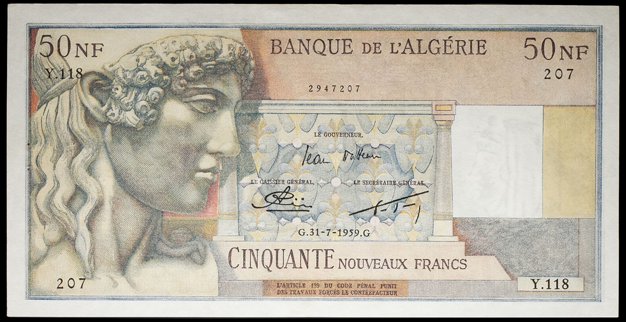 - ALGERIA 50 nouveaux francs type “Apollon” 31-7-1959.